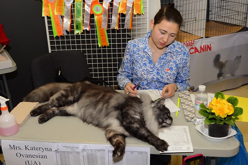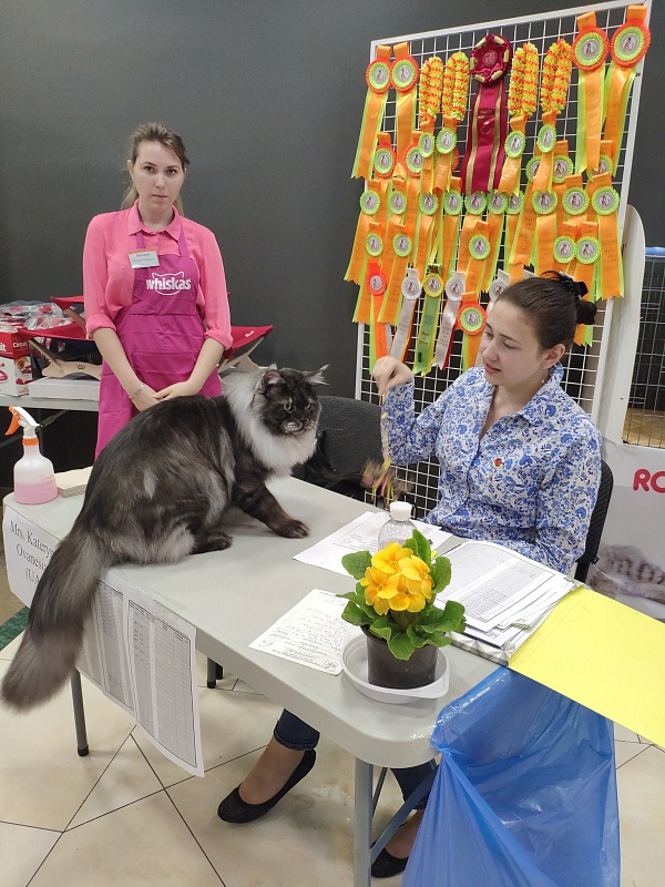 Girl Hera was gorgeous. She was not afraid of anything, not nervous. Her ratings are "Excellent". And for both days she received the “Best in color”, she was compared with an adult cat. And she even went around her brothers when there was a comparison of kittens in the litter.